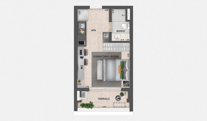 - Studio compacto e funcional